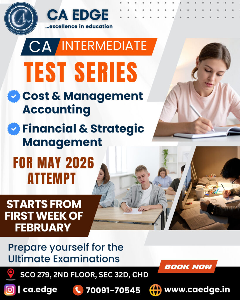 CA INTERMEDIATE CA Intermediate Test SeriesMay 2026 AttemptAdvanced Accounting CA Intermediate Test SeriesMay 2026 AttemptCost & Management Accounting CA Intermediate Test SeriesMay 2026 AttemptAdvanced Accounting, Taxation CA Intermediate Test SeriesMay 2026 AttemptCost & Management Accounting, Financial & Strategic Management